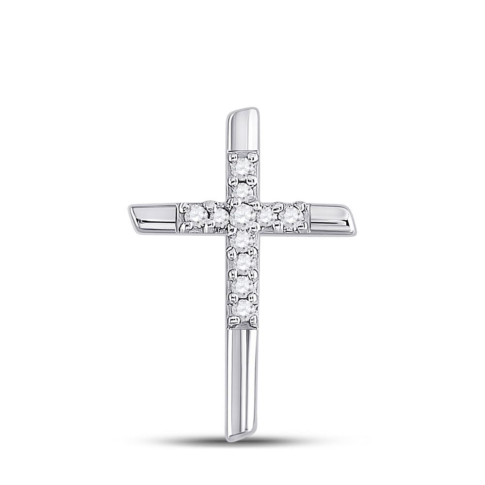 10kt White Gold Womens Round Diamond Cross Pendant 1/12 Cttw.