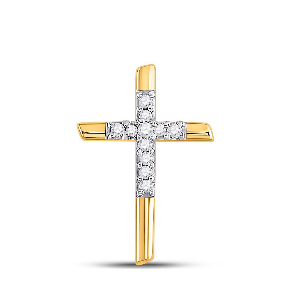 10kt Yellow Gold Womens Round Diamond Cross Pendant 1/12 Cttw.