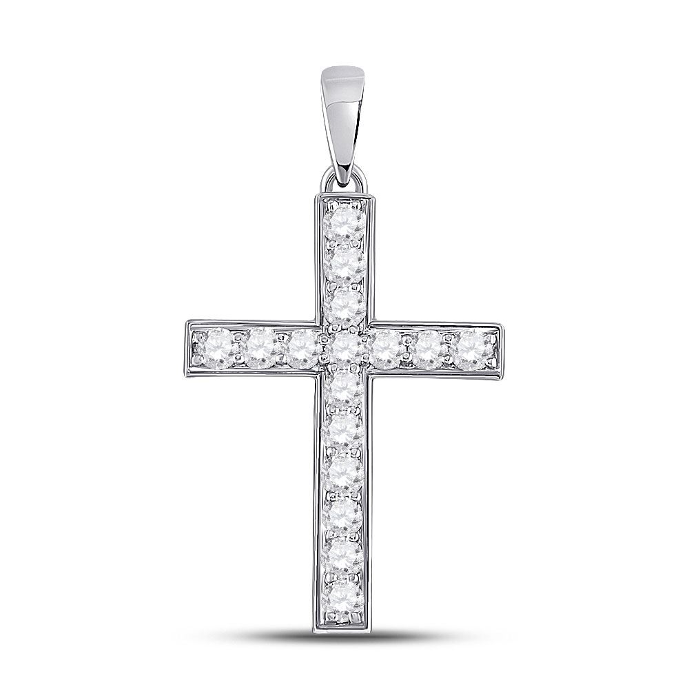 10kt White Gold Womens Round Diamond Cross Pendant 1/2 Cttw.