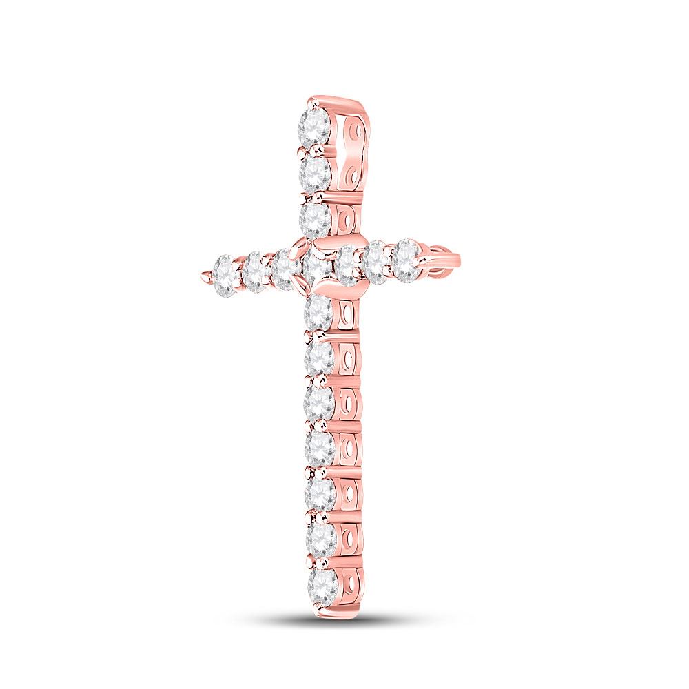 Round Diamond Cross Pendant 1/2 Cttw 14KT Rose Gold