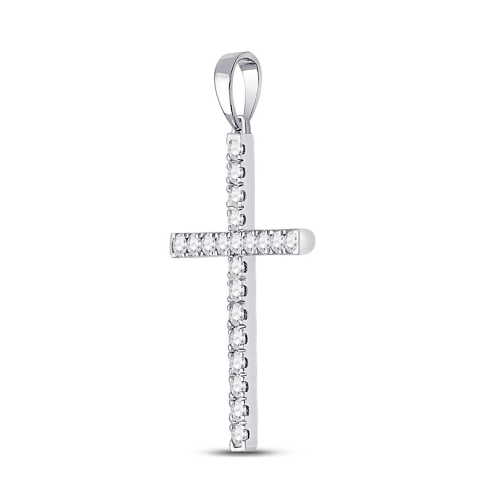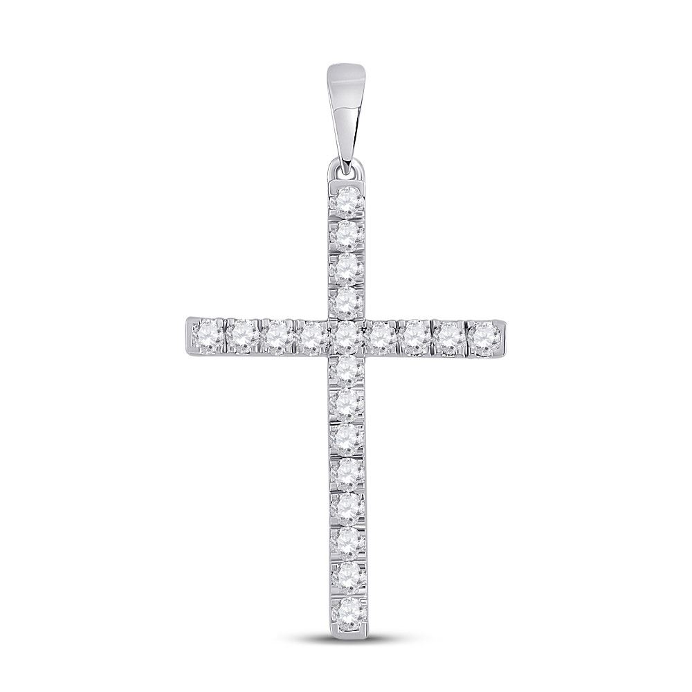 14kt White Gold Womens Round Diamond Cross Pendant 1/2 Cttw.