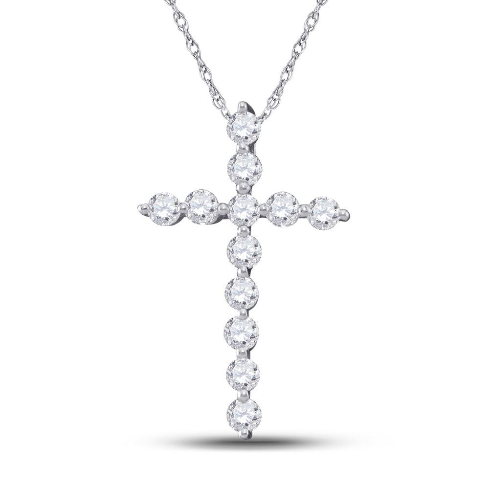 Round Diamond Cross Pendant 1/2 Cttw 14KT White Gold
