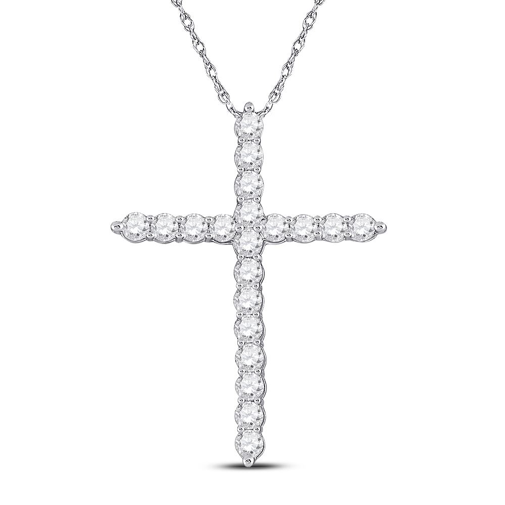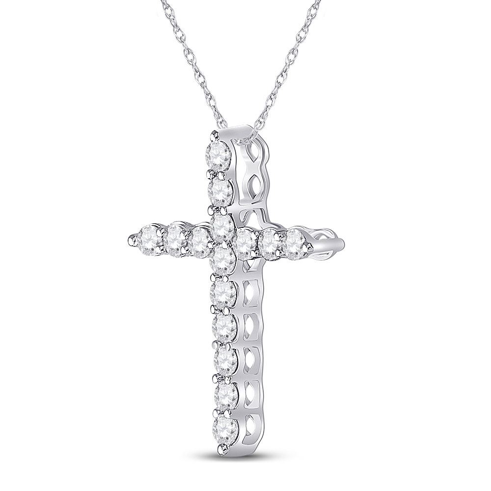 14kt White Gold Womens Round Diamond Cross Pendant 1/2 Cttw.