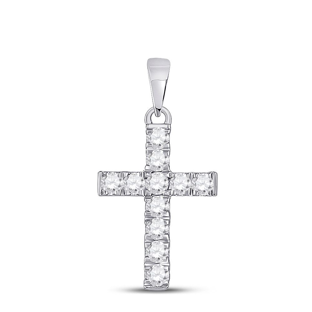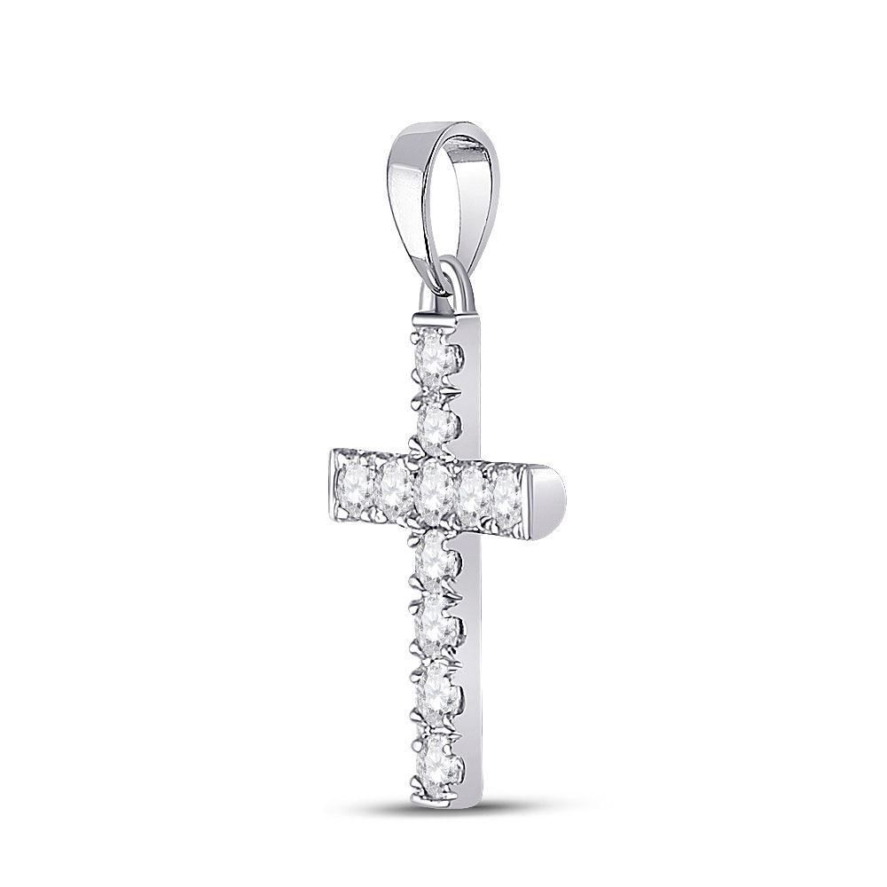 10kt White Gold Womens Round Diamond Cross Pendant 1/4 Cttw.