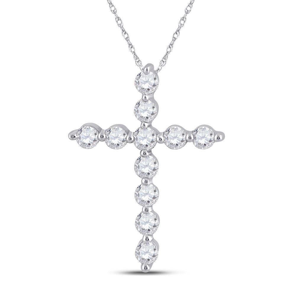 Round Diamond Cross Pendant 1/4 Cttw 14KT White Gold