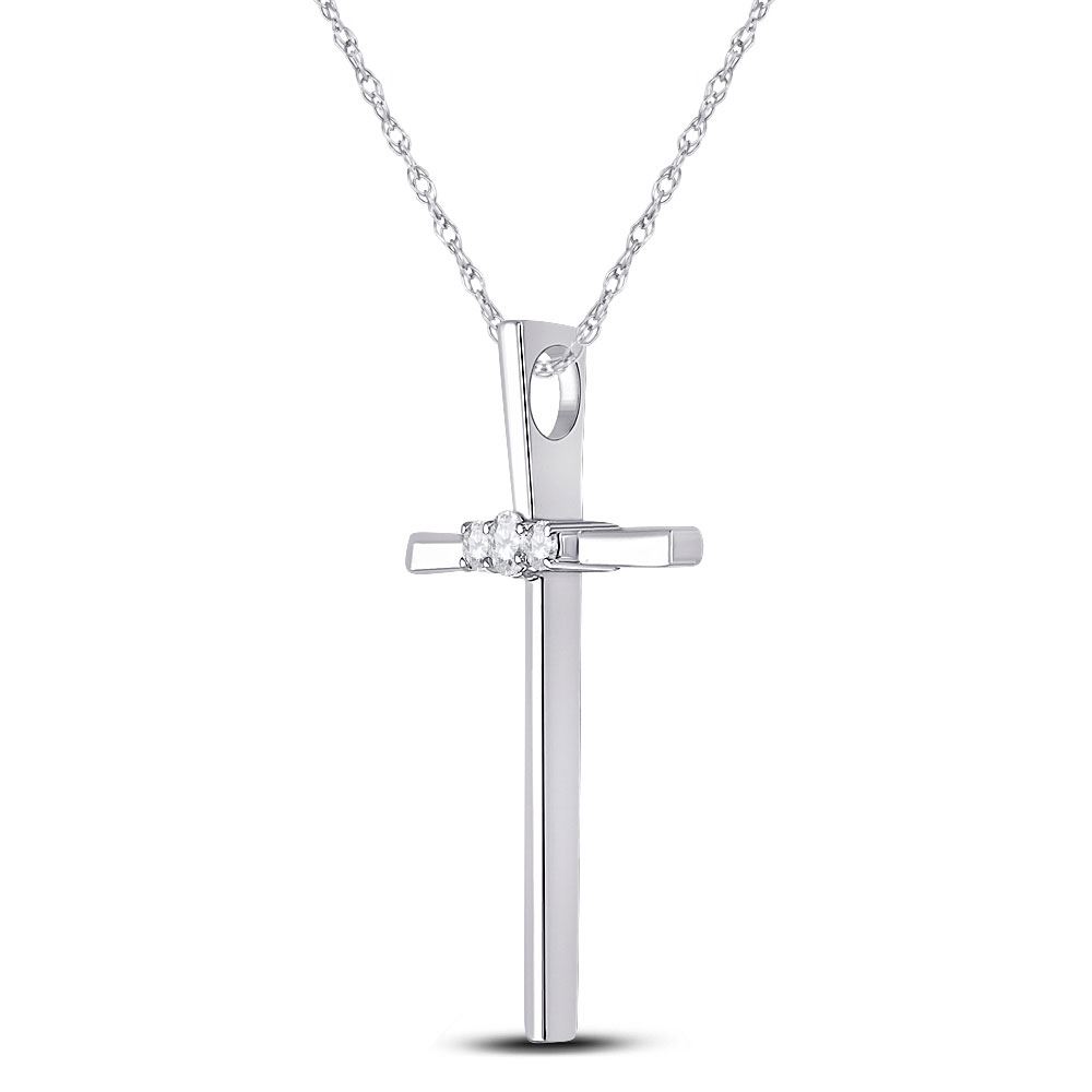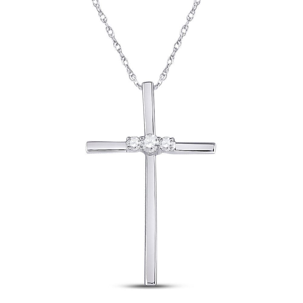 10kt White Gold Womens Round Diamond Cross Pendant 1/6 Cttw.