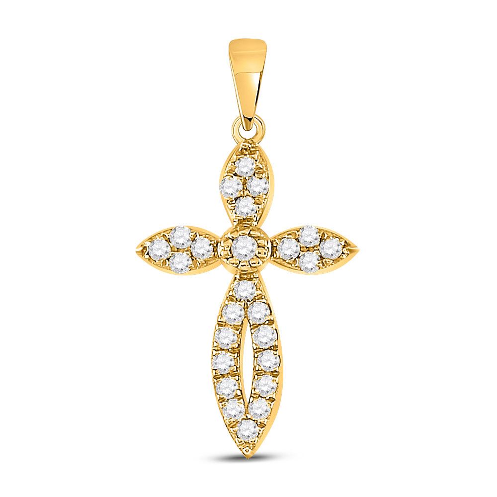 10kt Yellow Gold Womens Round Diamond Cross Pendant 1/6 Cttw.