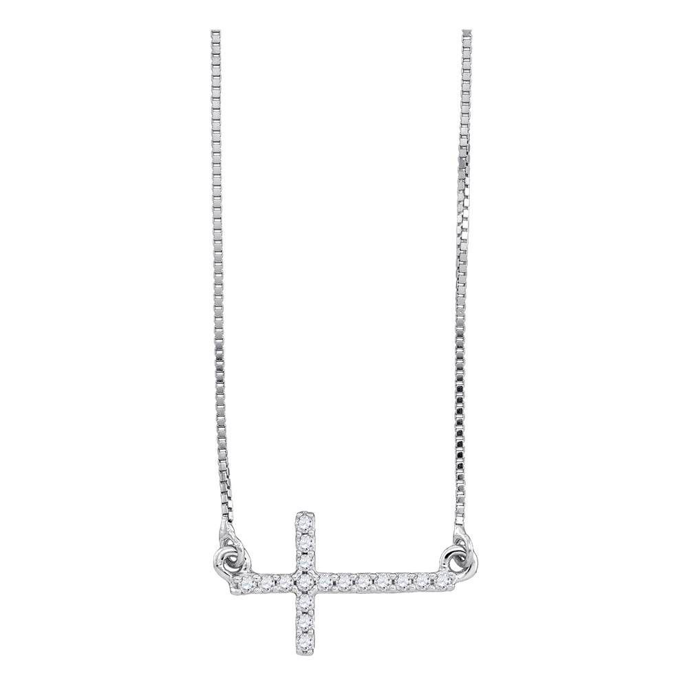 10kt White Gold Womens Round Diamond Cross Pendant Necklace Chain 1/10 Cttw.