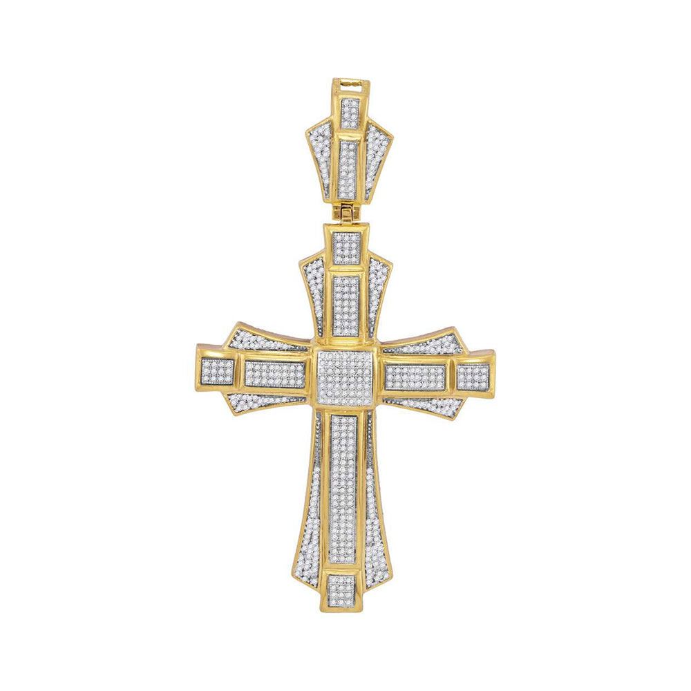 10kt Yellow Gold Mens Round Diamond Cross Saint John Charm Pendant 1 Cttw.