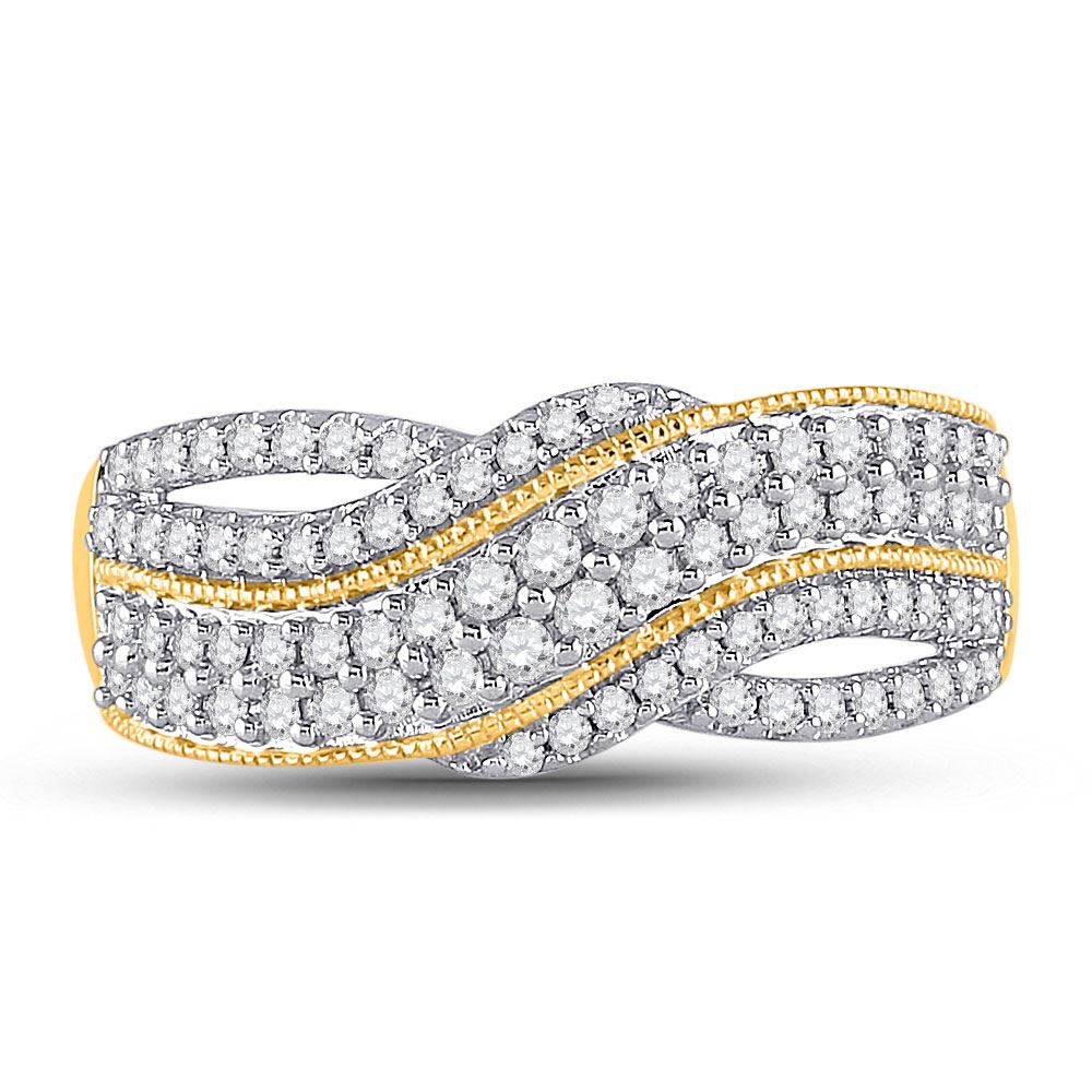 Round Diamond Crossover Band Ring 1/2 Cttw 10KT Yellow Gold