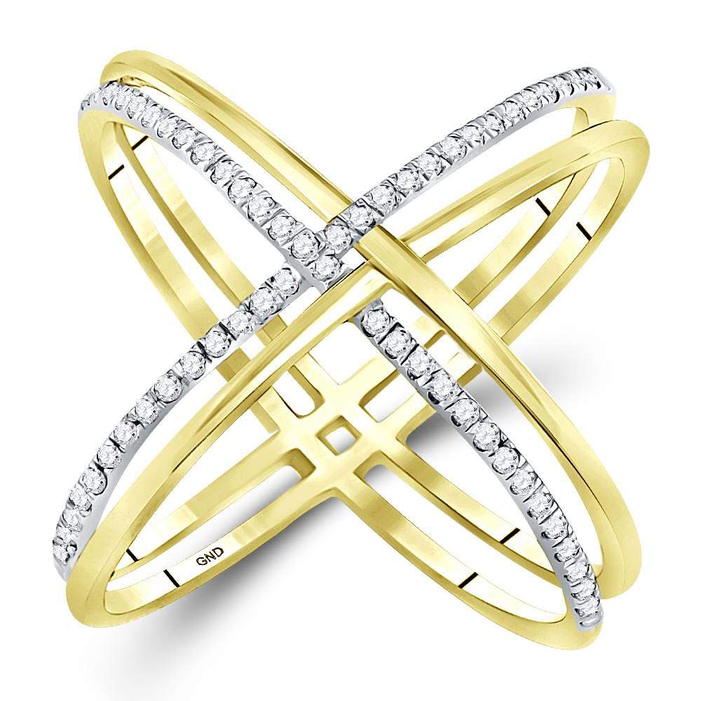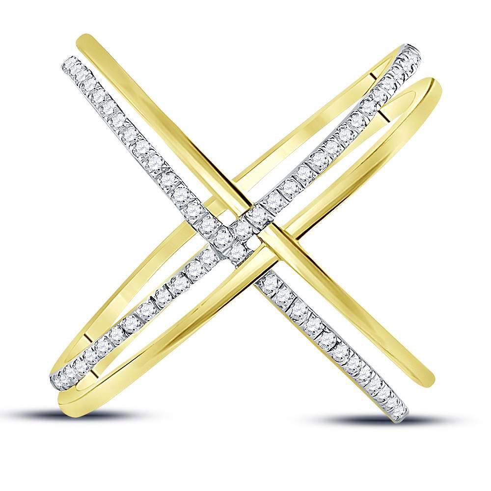 Round Diamond Crossover Band Ring 1/3 Cttw 10KT Yellow Gold