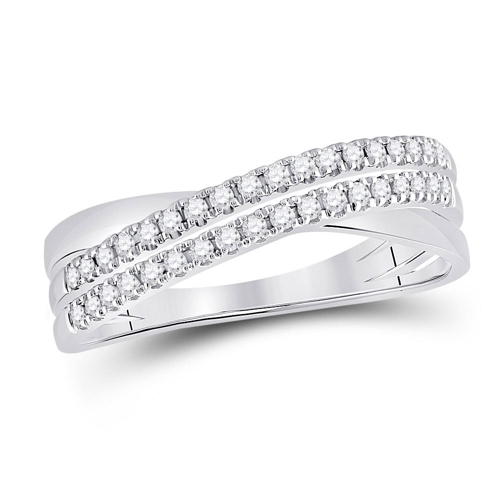 14kt White Gold Womens Round Diamond Crossover Band Ring 1/5 Cttw.