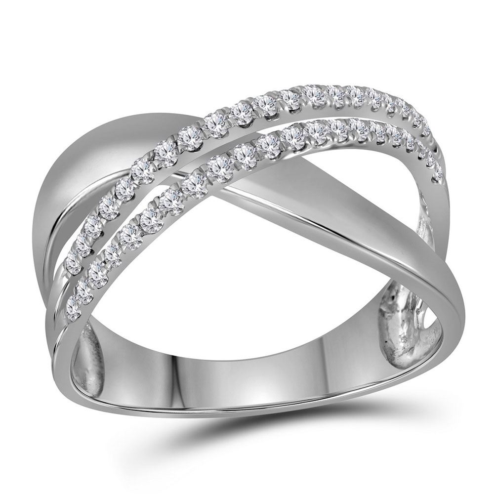 Round Diamond Crossover Band Ring 3/8 Cttw 10KT White Gold