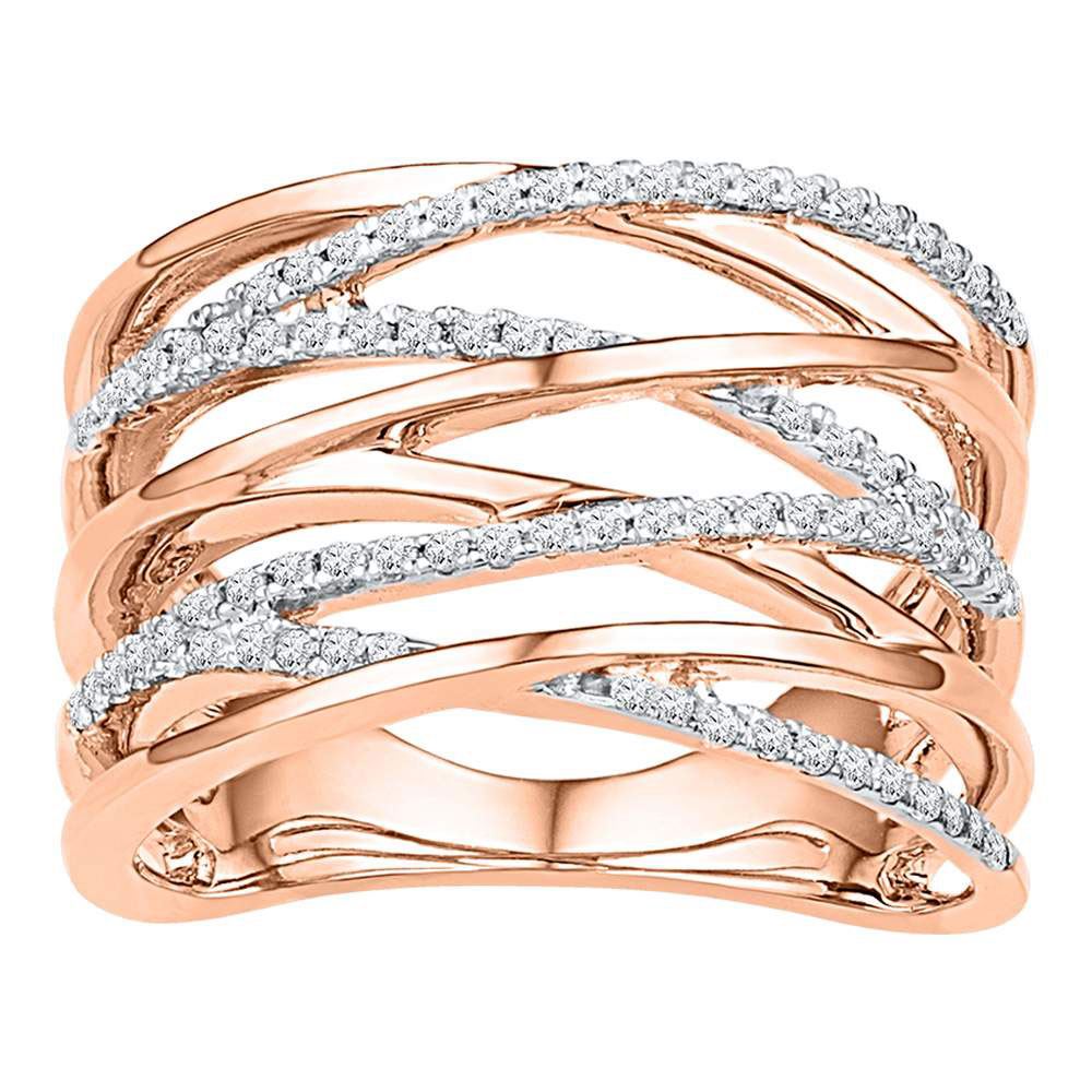 Round Diamond Crossover Strand Fashion Band Ring 1/4 Cttw 10KT Rose Gold