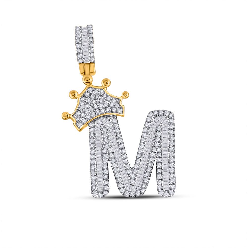 Round Diamond Crown M Letter Charm Pendant 7/8 Cttw 10KT Yellow Gold