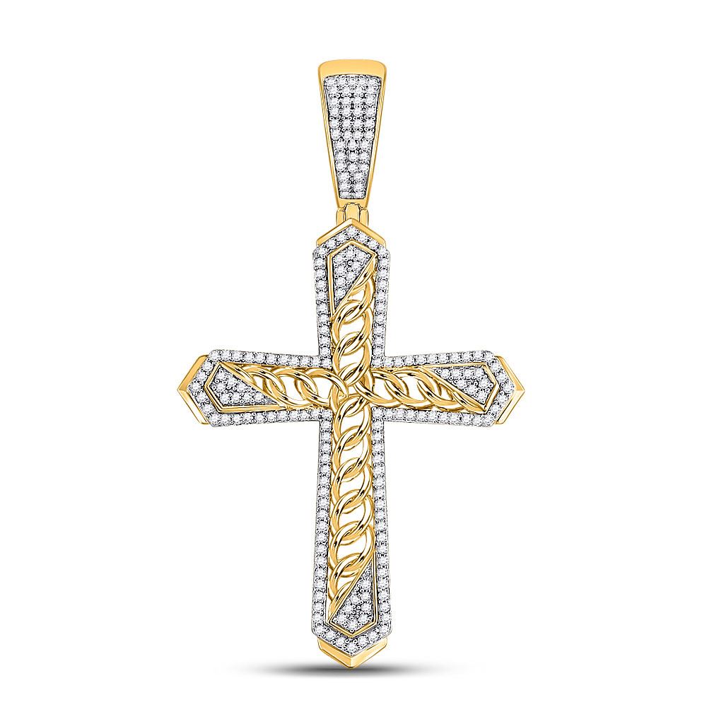 10kt Yellow Gold Mens Round Diamond Cuban Link Cross Charm Pendant 1/2 Cttw.