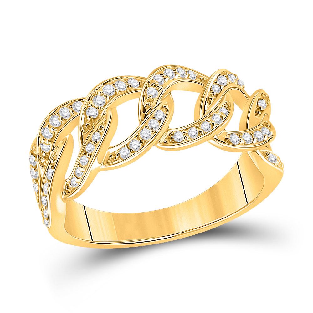 14kt Yellow Gold Womens Round Diamond Curb Cuban Link Band Ring 1/3 Cttw.