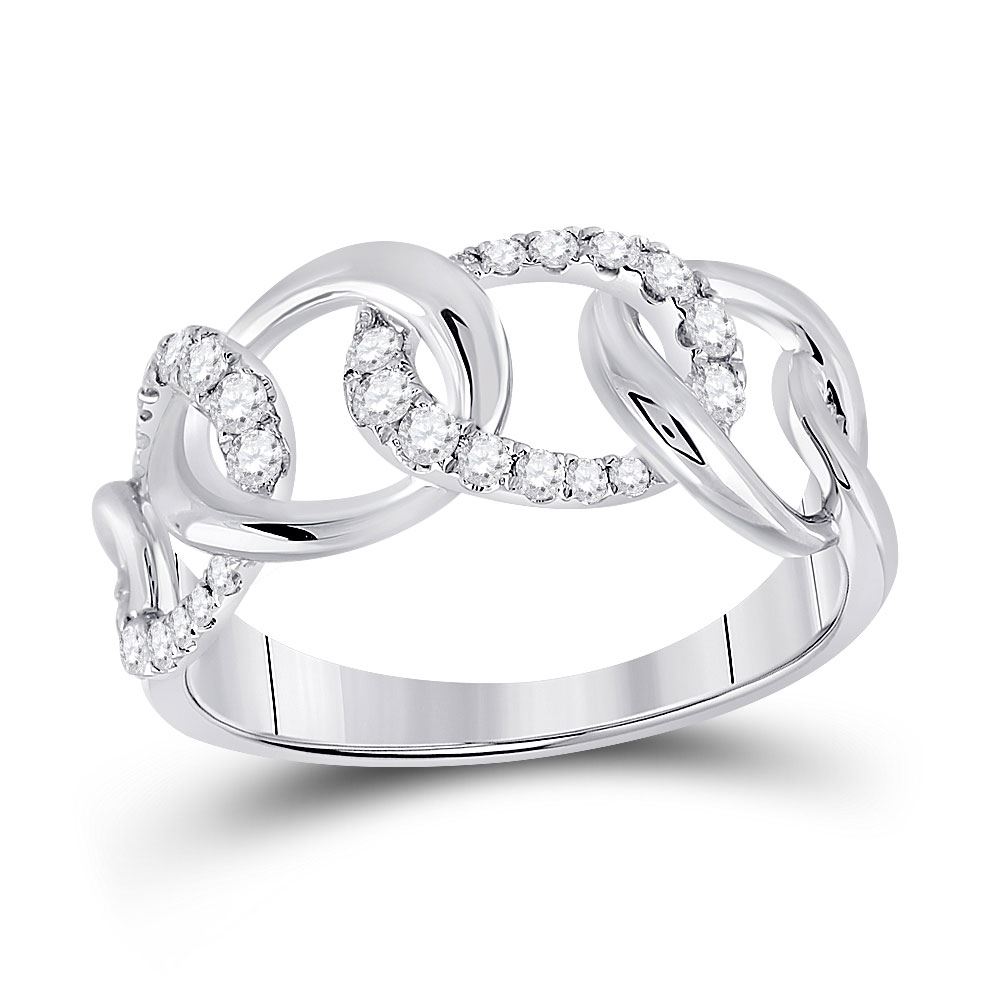 14kt White Gold Womens Round Diamond Curb Link Fashion Ring 1/3 Cttw.