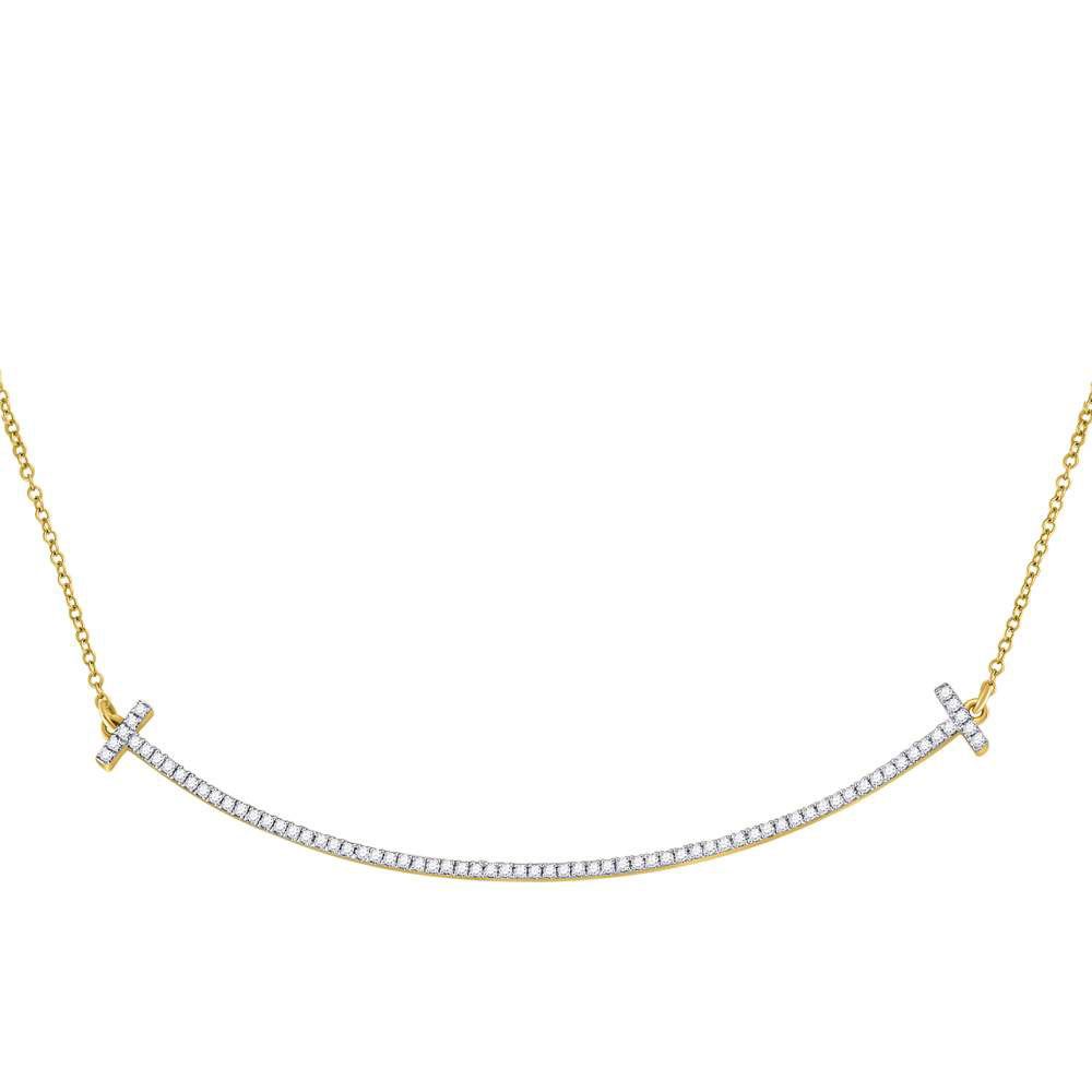 10kt Yellow Gold Womens Round Diamond Curved Bar Necklace 1/3 Cttw.