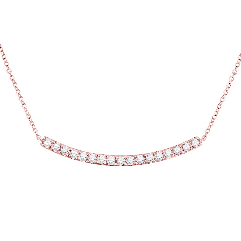 14kt Rose Gold Womens Round Diamond Curved Bar Necklace 3/4 Cttw.