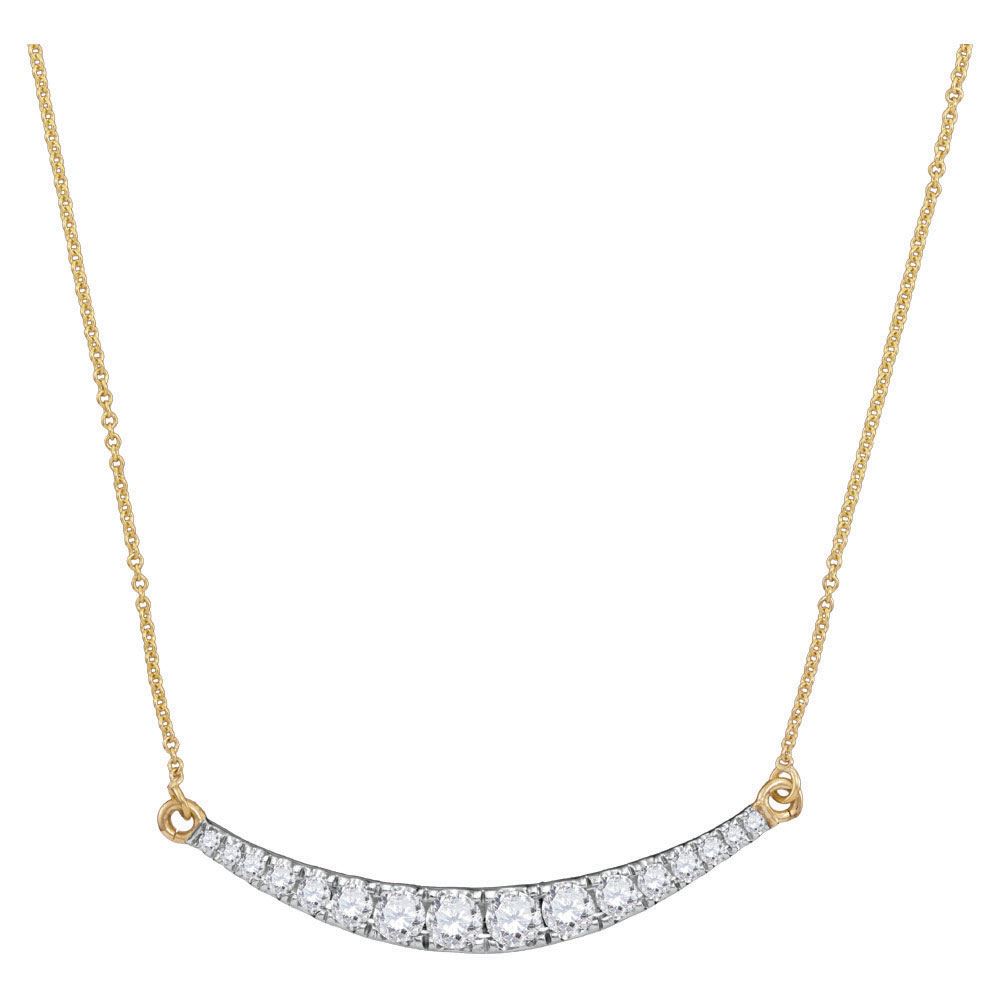Round Diamond Curved Bar Pendant Necklace 1 Cttw 10KT Yellow Gold