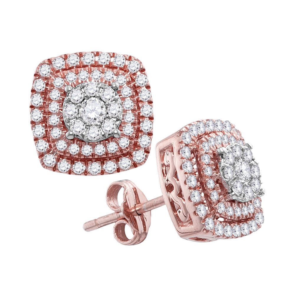 Round Diamond Cushion Cluster Stud Earrings 1 Cttw 14KT Rose Gold