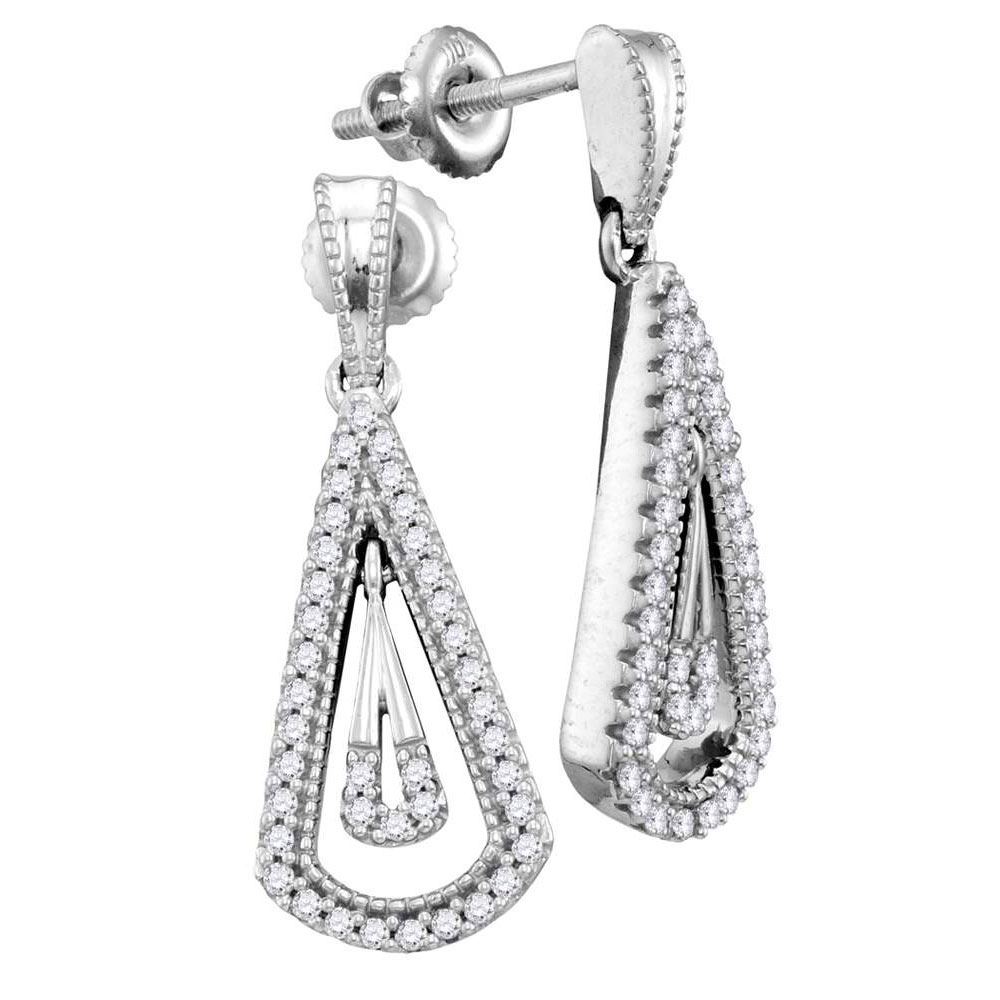 10kt White Gold Womens Round Diamond Dangle Earrings 1/4 Cttw.