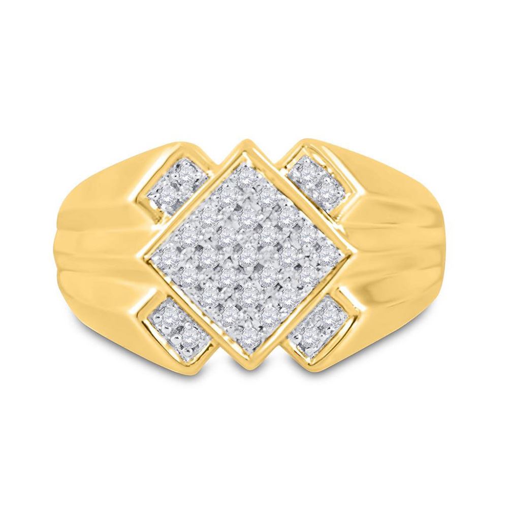 10kt Yellow Gold Mens Round Diamond Diagonal Offset Square Ring 1/4 Cttw.