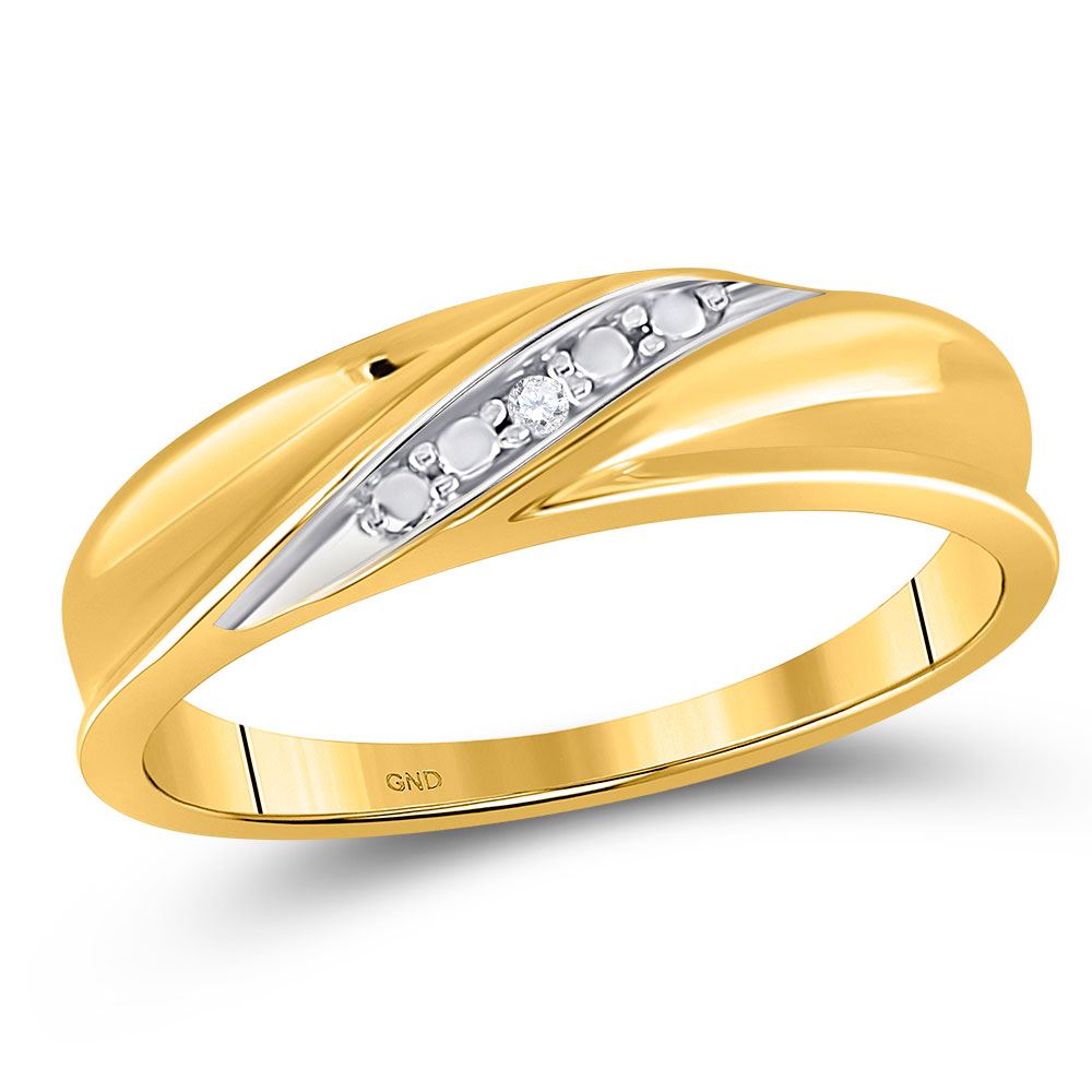10kt Yellow Gold Mens Round Diamond Diagonal Row Band Ring .02 Cttw.