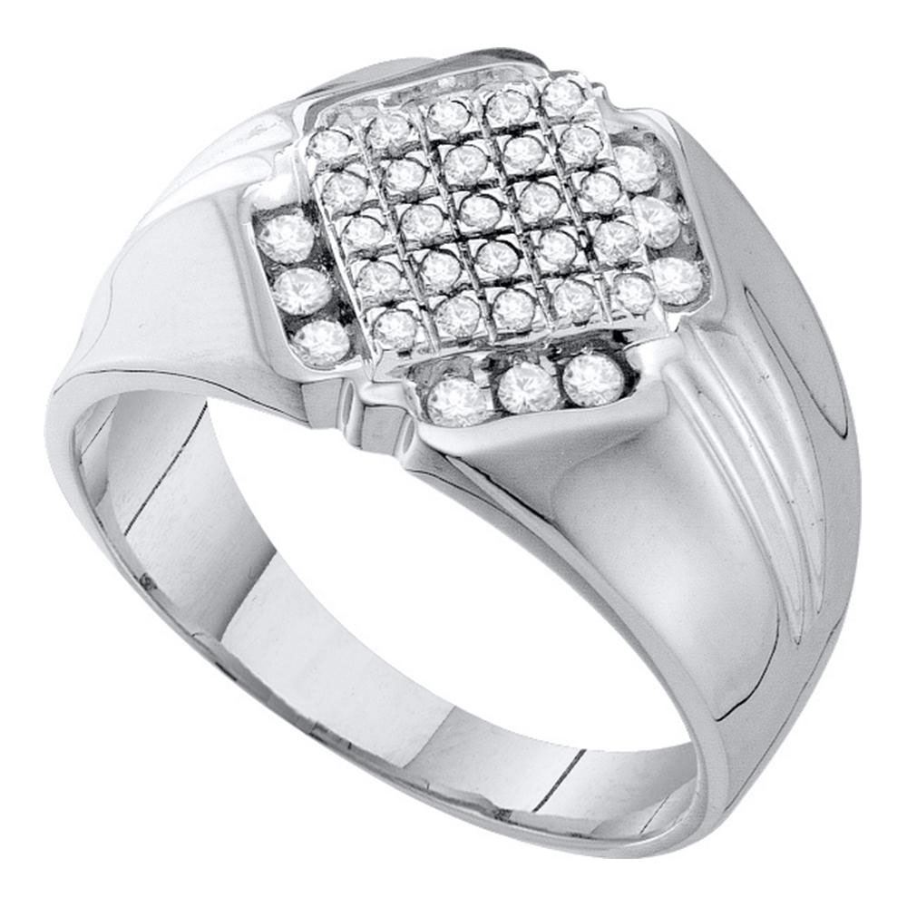 10kt White Gold Mens Round Diamond Diagonal Square Cluster Ring 1/2 Cttw.