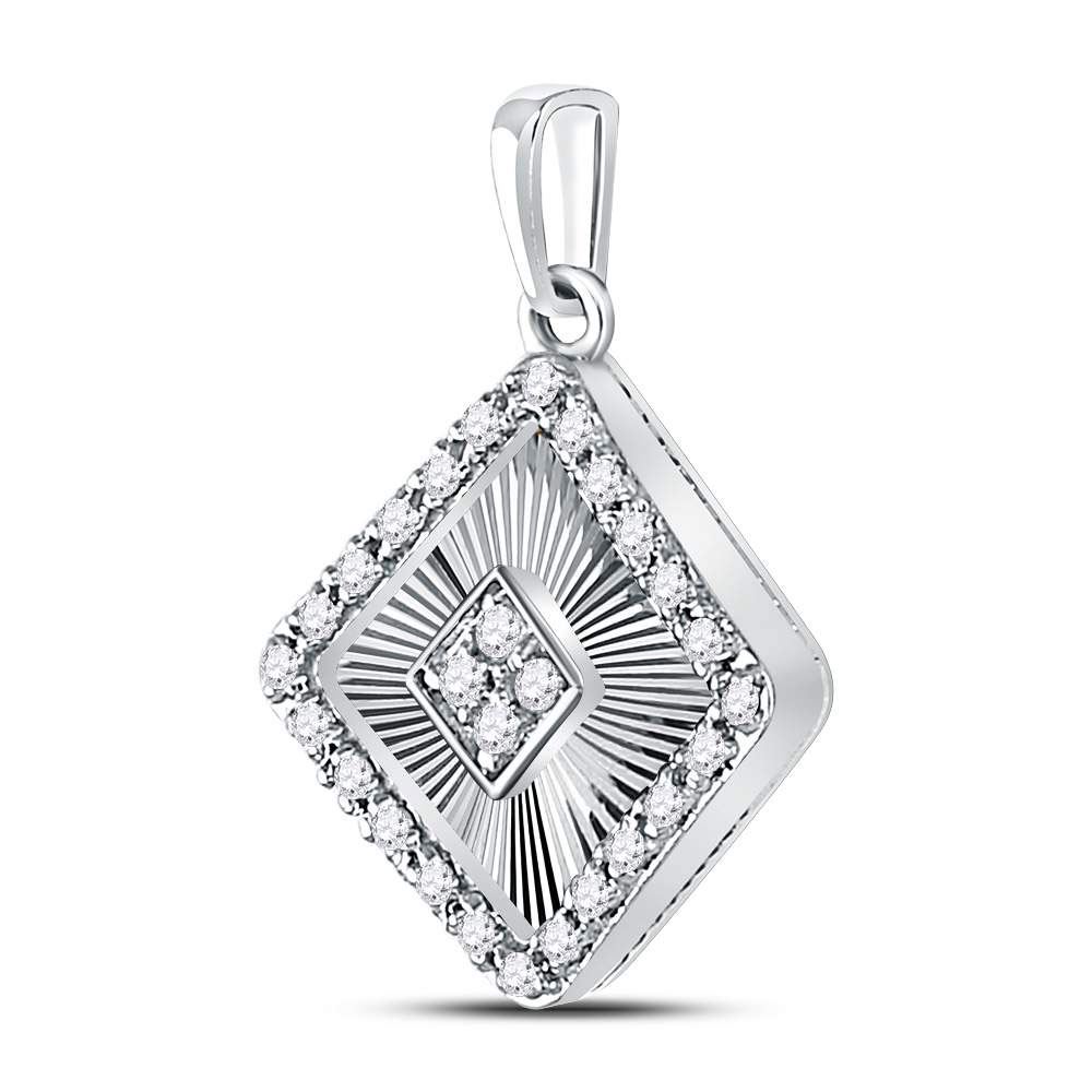 10kt White Gold Womens Round Diamond Diagonal Square Pendant 1/6 Cttw.