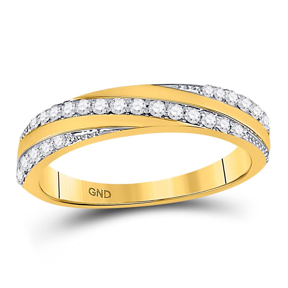 14kt Yellow Gold Womens Round Diamond Diagonal Stripe Band Ring 1/4 Cttw.