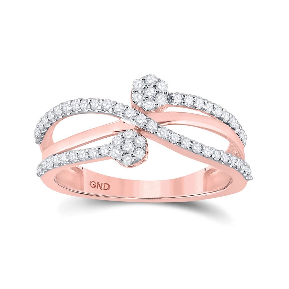 10kt Rose Gold Womens Round Diamond Double Flower Cluster Ring 1/3 Cttw.