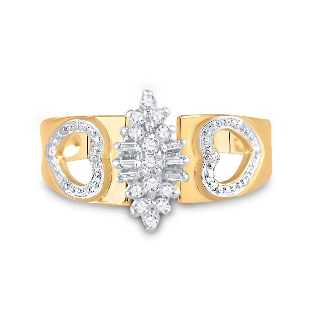 10kt Yellow Gold Womens Round Diamond Double Heart Cluster Ring 1/8 Cttw.