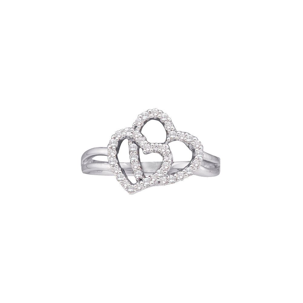 Round Diamond Double Heart Ring 1/4 Cttw 14KT White Gold