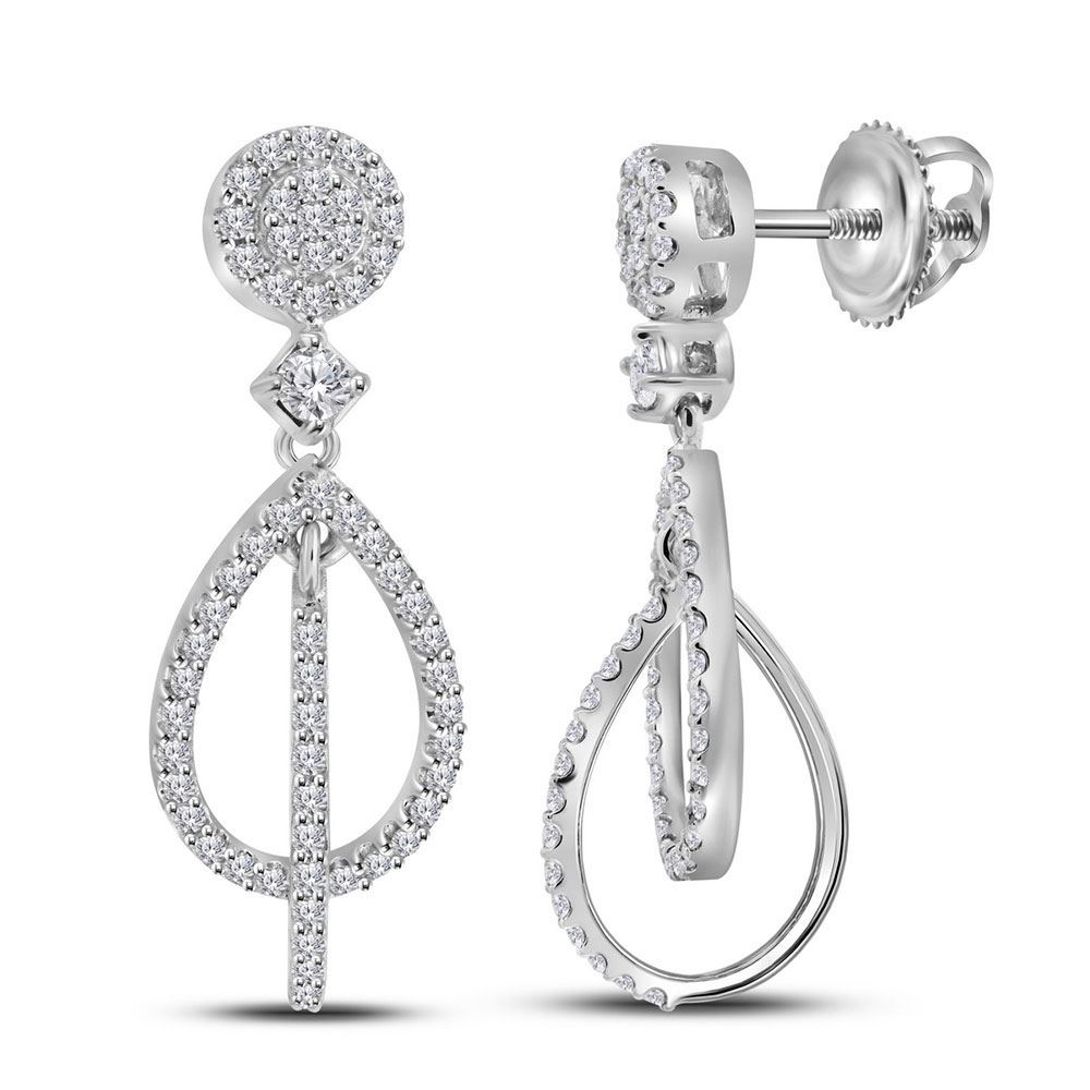Round Diamond Double Teardrop Dangle Earrings 3/8 Cttw 10KT White Gold