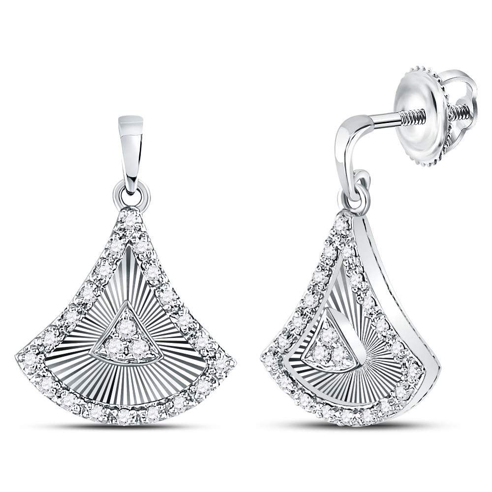10kt White Gold Womens Round Diamond Fan Dangle Earrings 1/5 Cttw.