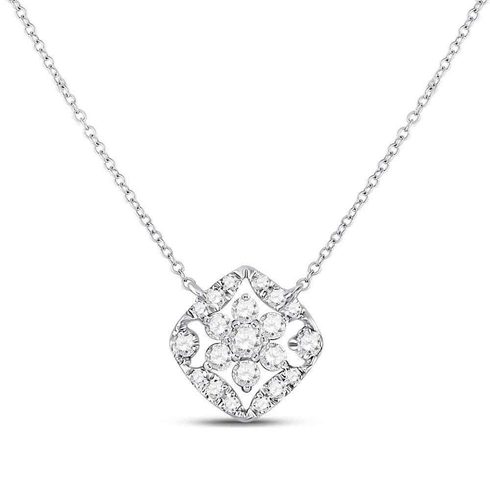14kt White Gold Womens Round Diamond Floral Cluster Necklace 1/3 Cttw.
