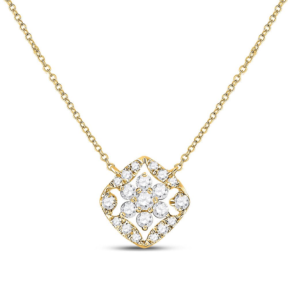 14kt Yellow Gold Womens Round Diamond Floral Cluster Necklace 1/3 Cttw.