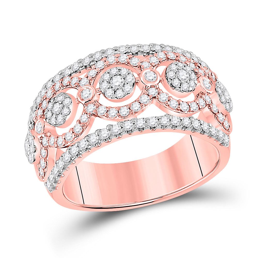 Round Diamond Flower Cluster Band Ring 7/8 Cttw 14KT Rose Gold