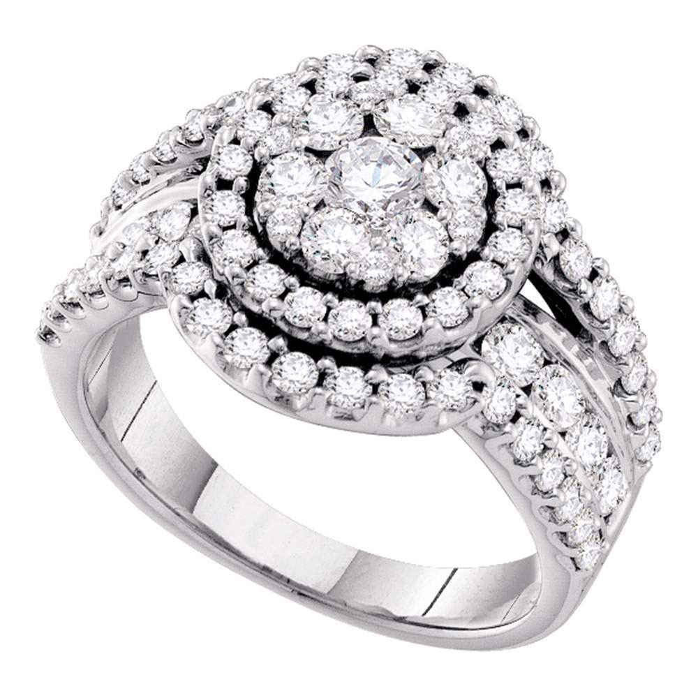 Round Diamond Flower Cluster Cluster Ring 2 Cttw 14KT White Gold
