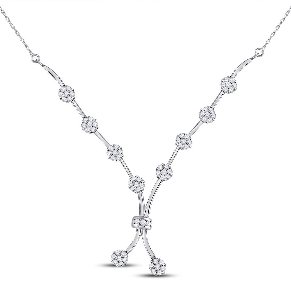 Round Diamond Flower Cluster Cocktail Necklace 1 Cttw 14KT White Gold