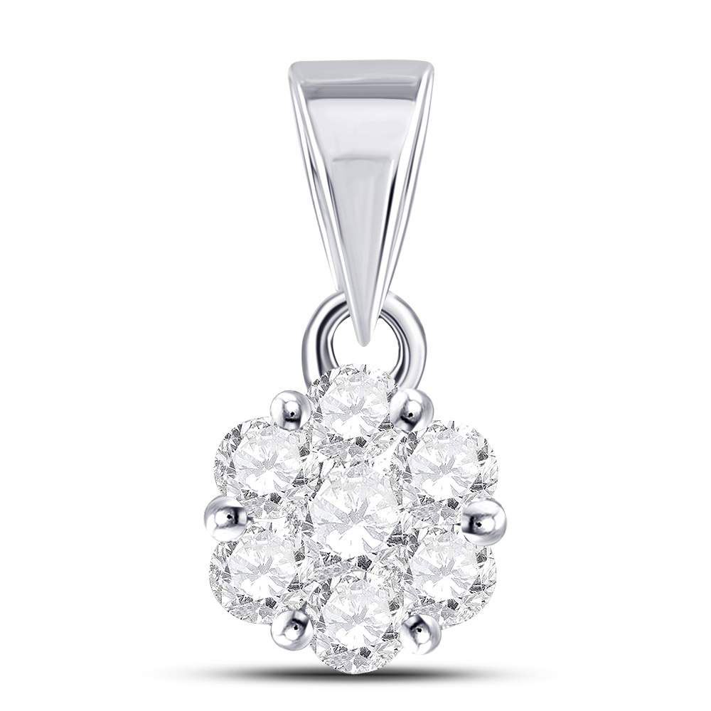 Round Diamond Flower Cluster Pendant 1/2 Cttw 14KT White Gold