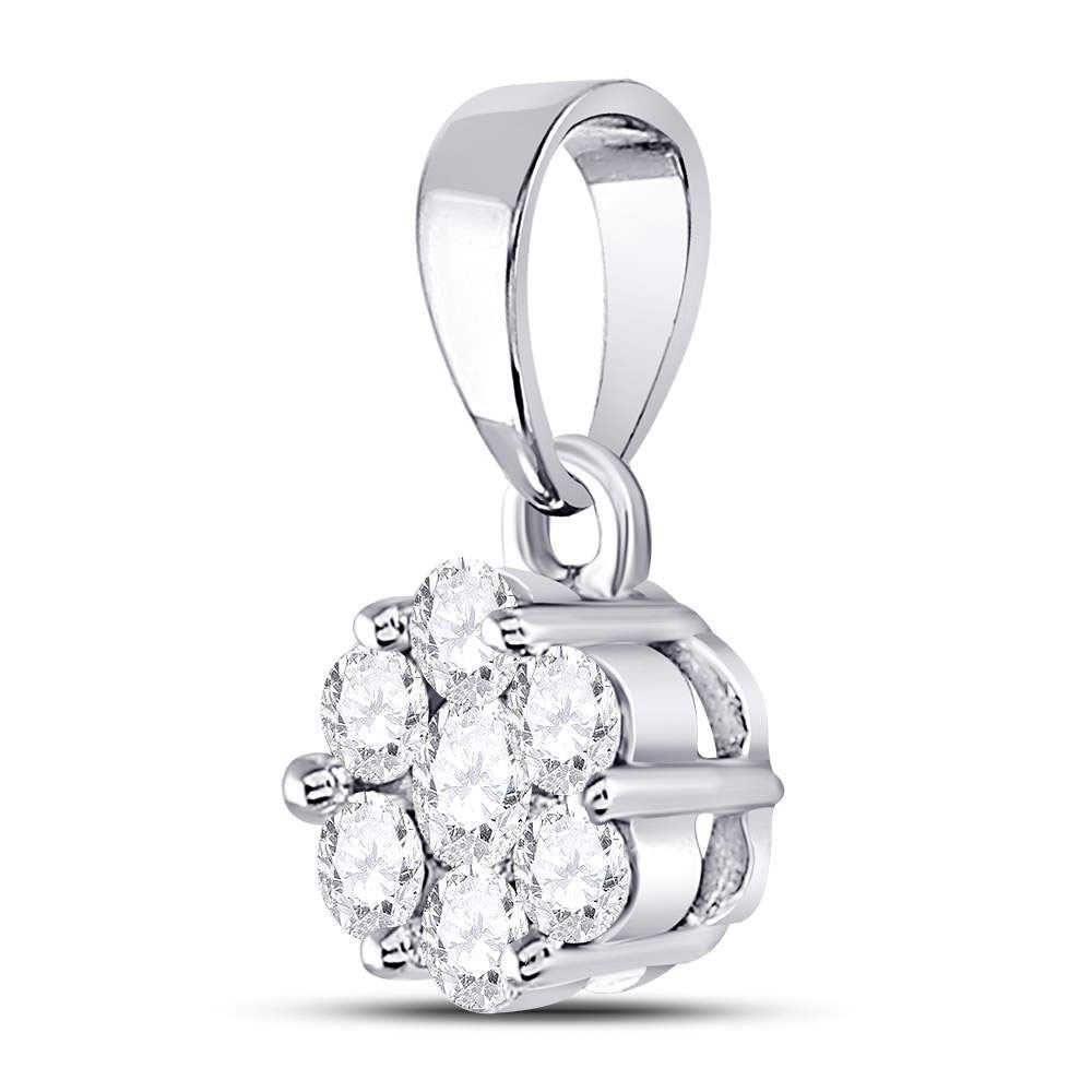 14kt White Gold Womens Round Diamond Flower Cluster Pendant 1/2 Cttw.