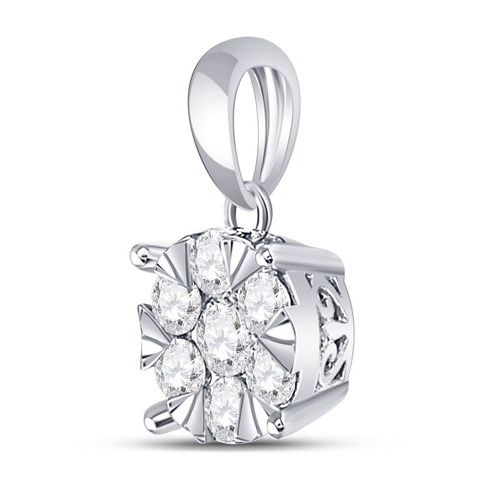 14kt White Gold Womens Round Diamond Flower Cluster Pendant 1/2 Cttw.