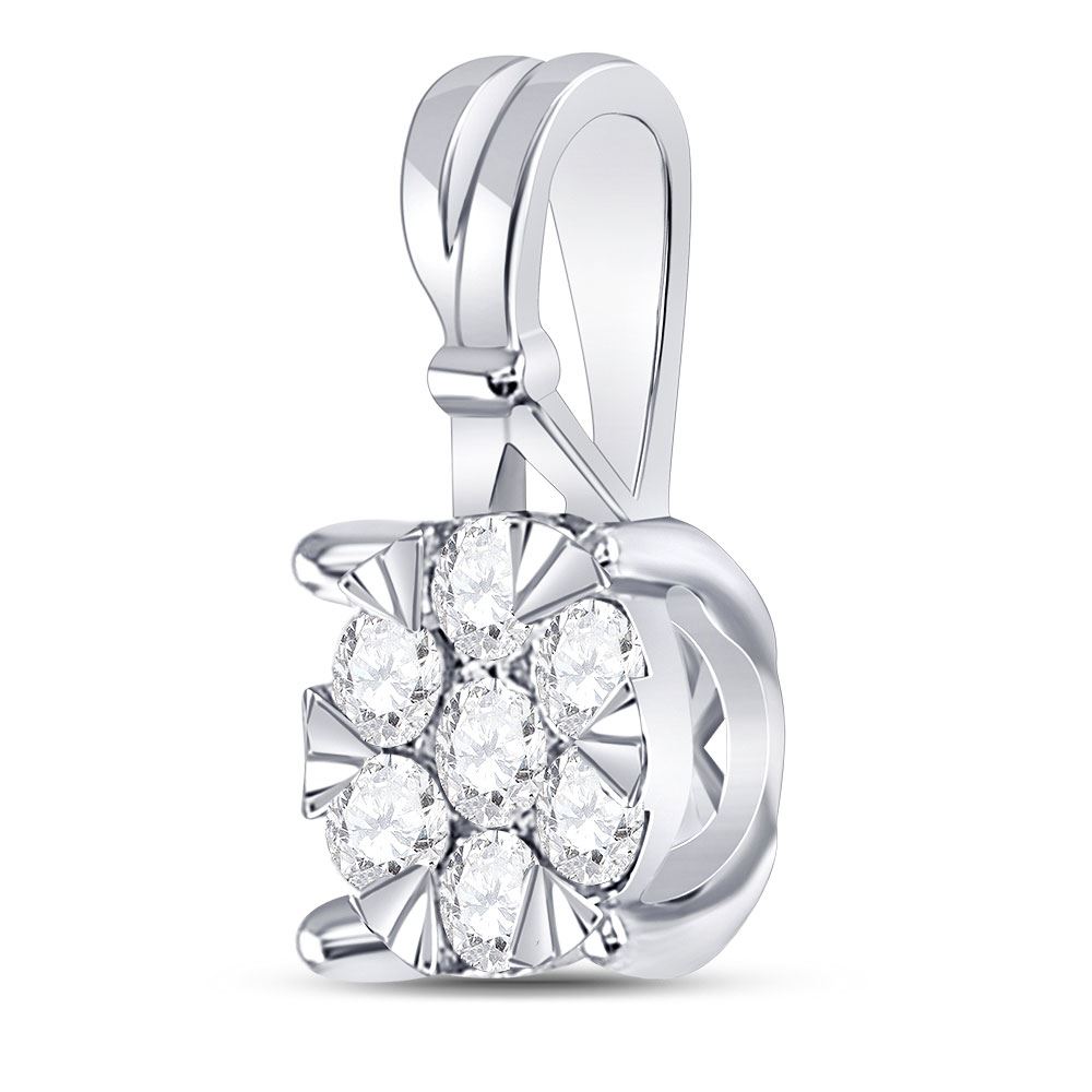 Round Diamond Flower Cluster Pendant 1/3 Cttw 14KT White Gold