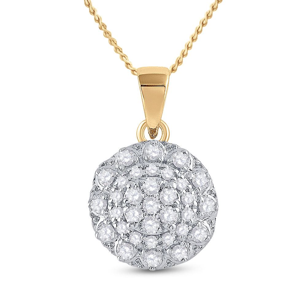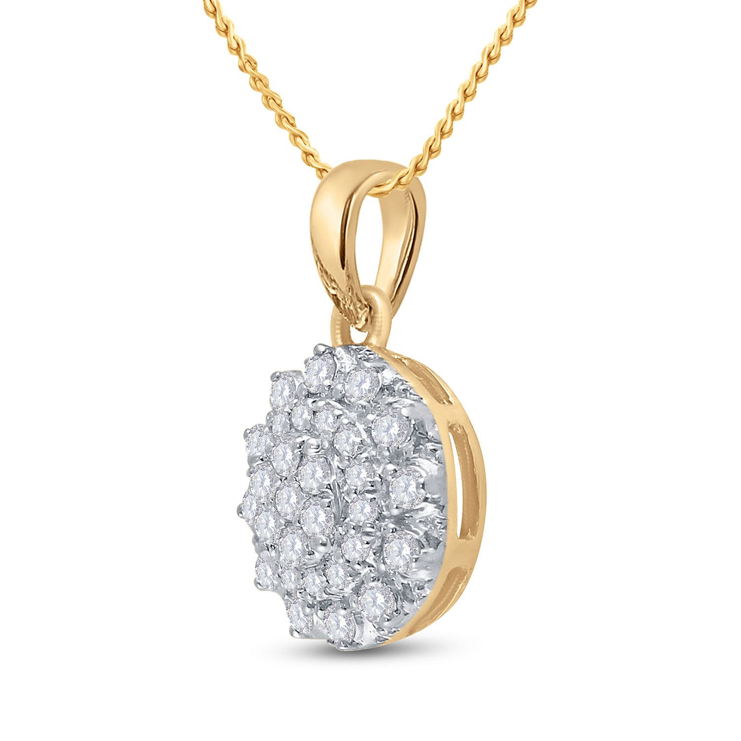 Round Diamond Flower Cluster Pendant 1/3 Cttw 14KT Yellow Gold