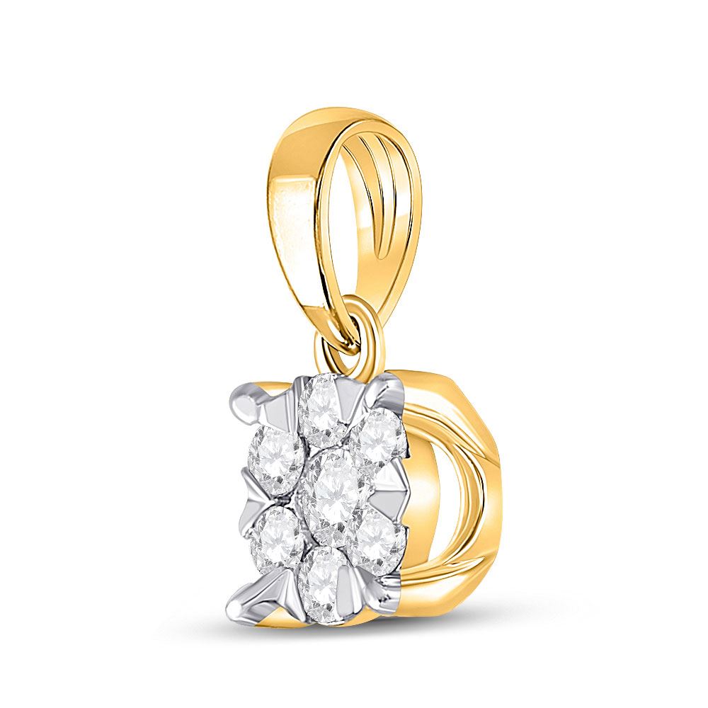 Round Diamond Flower Cluster Pendant 1/4 Cttw 14KT Yellow Gold