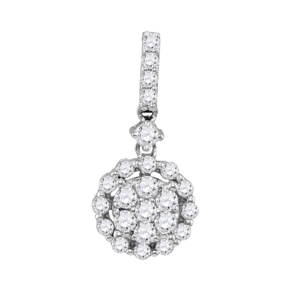 Round Diamond Flower Cluster Pendant 5/8 Cttw 14KT White Gold