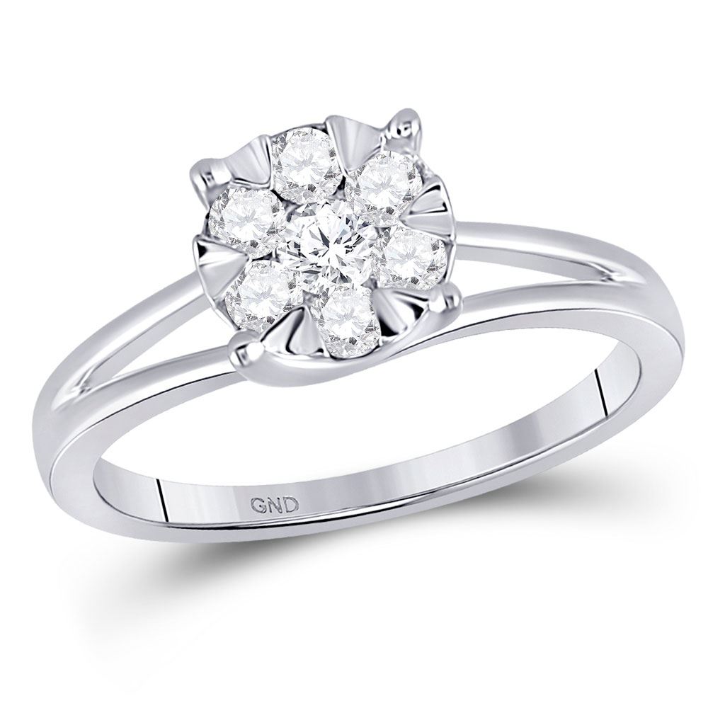 Round Diamond Flower Cluster Ring 1/2 Cttw 10KT White Gold